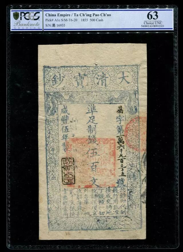 咸丰五年大清宝钞伍百文一枚(PCGS 63)
